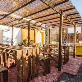 Sociale ruimte/bar (55,00 m2): deze ruimte dient als receptie van het hostel, maar ook voor de kampeerders en backpackers om te socialiseren
