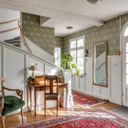 Karakteristiek, veel ruimte en een eigen strand aan het meer Fryken… Dit schitterende huis telt drie verdiepingen met in totaal 456 m² aan woonoppervlak, 13 kamers en een volledige kelder. Geschikt als eigen woonhuis of voor bijvoorbeeld een generatiewoning, B&B’s of retraites. Op slechts een steenworp afstand van het huis ligt een eigen zandstrand, ideaal voor een morgondopp, kajakken, vissen…