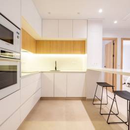 Er zijn appartementen met drie slaapkamers en twee badkamers met grote terrassen, samen met exclusieve penthouses met jacuzzi en buitenkeuken op het solarium en woningen op de begane grond met tuin en allemaal inclusief parkeerkelder.