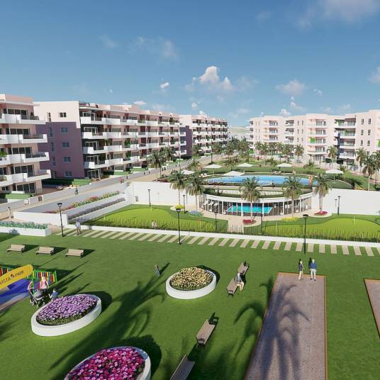 Deze nieuwe Residentie zal grote gemeenschappelijke ruimtes hebben waar u kunt ontspannen in het grote zomerzwembad of in de verwarmde Spa, kinderen zullen moeten genieten van de "Vista Park" en de meer sportieve een fitnessruimte met bio-gezonde machines en een "Putting Green Golf" om uw swing te oefenen, allemaal in een gesloten complex met grote en goed onderhouden groene gebieden voor iedereen om te genieten.