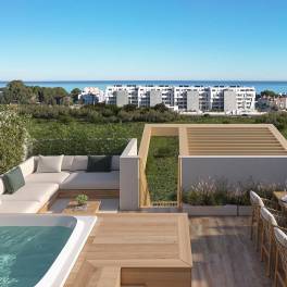 De appartementen met een, twee of drie slaapkamers en een, twee of drie badkamers zijn van verschillende groottes met verschillende indelingen. Het belangrijkste kenmerk van de Talasa-woningen zijn de grote terrassen. Met hun regelmatige proporties zijn ze de ideale ruimten om buiten te leven. De integratie van de woonkamer met deze ruime terrassen zal je huis verenigen als een leefbaar volume waar het interieur samensmelt met het exterieur. Woningen georganiseerd rond een woonkamer openen naar een terras-slaapkamer. Leef binnen en buiten het huis.