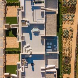 Dit prachtige complex bestaande uit gelijkvloerse appartementen en penthouse appartementen met twee en drie slaapkamers is gelegen op goede locatie, op een afgesloten domein, waar 24/24h 7 op 7 bewaking aanwezig is. Druk bezochte plaatsen zoals Torrevieja, Orihuela Costa of Guardamar del Segura bevinden zich op korte afstand van het prachtige complex.De appartementen hebben twee slaapkamers en twee badkamers. De penthouse appartementen genieten van een ruim terras aan de woonkamer en een privaat dakterras van 52m² met uitzicht op de zoutmeren, Torrevieja en de gemeenschappelijke tuin. Alle appartementen hebben standaard een eigen parkeerplaats en men heeft de mogelijkheid om een extra berging aan te kopen voor slechts 1.800 euro. Het project is laagbouw, hierdoor geniet men van veel privacy, een open gevoel, lage onderhoudskosten en een kleinschalig project.