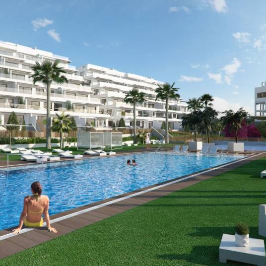 Dompel jezelf onder in een luxe oase met een prachtig buiten- en binnenzwembad, een paddle-tennisbaan, sportscholen en gemeenschappelijke ruimtes die zijn ontworpen om u rust en sereniteit te bieden. Elke woning biedt via grote ramen een perfecte overgang tussen binnen en buiten, terwijl een elegant bruin rooster niet alleen bescherming tegen de zon biedt, maar ook een vleugje eigentijds design toevoegt.