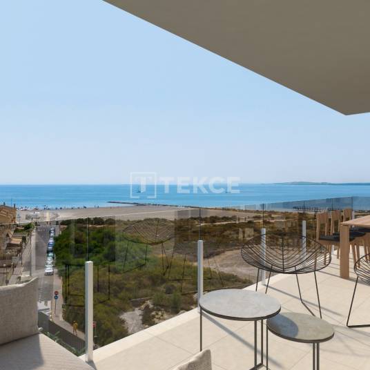 Appartementen met terrassen in een privécomplex van Santa Pola, Alicante, Costa BlancaDeze appartementen liggen in Santa Pola en beschikken over ruime terrassen en bevinden zich in een privécomplex. Santa Pola is een felbegeerde kustgemeente in de provincie Alicante, omarmd door het aangename klimaat van de Costa Blanca en bekend om zijn prachtige stranden en landschappen.Santa Pola biedt uitgebreide voorzieningen voor een comfortabele levensstijl, waaronder gemakkelijke toegang tot het nabijgelegen zandstrand en een scala aan restaurants en bars. Het stadscentrum herbergt essentiële diensten zoals scholen, medische centra, bankfaciliteiten, winkels en supermarkten. Santa Pola heeft een strategische ligging, op slechts 10 minuten rijden van de luchthaven van Alicante en op ongeveer 15 minuten van de levendige stad Alicante, bekend om zijn evenementen en vrijetijdsmogelijkheden het hele jaar door.De appartementen te koop in Santa Pola Alicante zijn gelegen in een privécomplex met gemeenschappelijke voorzieningen zoals tuinen, terrassen, een zwembad en overdekte parkeerplaats. Elk appartement beschikt over een aangewezen parkeerplaats, uitgestrekte terrassen en penthouses die de luxe van privésolariums bieden. Deze ruime appartementen beschikken over een open keuken, goed verlichte woonruimtes en wasruimtes, terwijl de keuze aan slaapkamers en badkamers varieert afhankelijk van het geselecteerde model. ALC-00749