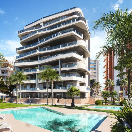Nieuwbouw wooncomplex gelegen tegenover de rivier de Segura en vlakbij de jachthaven en het strand van Guardamar.
