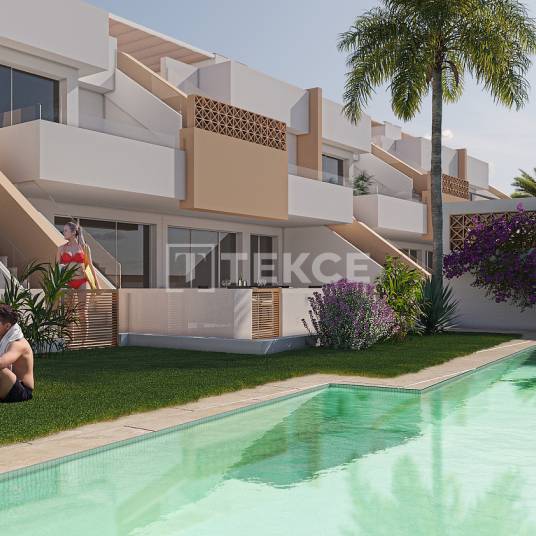 Appartementen met 2 en 3 Slaapkamers aan Zee in Pilar de la HoradadaPilar de la Horadada is een charmant kustplaatsje in het zuiden van Alicante, bekend om zijn mediterrane stranden, bruisende stadscentrum en uitstekende voorzieningen. Het gebied combineert Spaanse traditie met modern leven, met winkelstraten, restaurants, culturele activiteiten en gemakkelijke toegang tot zowel de Middellandse Zee als de Mar Menor.De appartementen te koop in Pilar de la Horadada zijn ideaal gelegen, met de dichtstbijzijnde supermarkt op slechts 0,3 km afstand, restaurants en cafés op 0,5 km en het stadscentrum op slechts 1 km. De zandstranden van de Middellandse Zee liggen op 3 km afstand en de lagune van Mar Menor op 4 km afstand. De golfbaan Lo Romero ligt op 7 km van het complex en het nabijgelegen stadje San Pedro del Pinatar op 8 km. De levendige stad Torrevieja kan worden bereikt in 20 km, Cartagena in 40 km, de luchthaven van Murcia in 38 km en de luchthaven van Alicante in 75 km.De appartementen bevinden zich in een modern complex dat een veilige en gastvrije omgeving biedt met aangelegde tuinen, een groot gemeenschappelijk zwembad, parkeergelegenheid op eigen terrein en individuele bergingen voor elk appartement.De appartementen beschikken over een ruime open woon- en eetkamer met een volledig uitgeruste moderne keuken en grote schuifpuien die de leefruimte naar buiten vergroten. Kopers kunnen kiezen uit appartementen op de begane grond met royale terrassen of appartementen op de bovenste verdieping met een eigen solarium. De slaapkamers zijn voorzien van inbouwkasten, terwijl de master suites een eigen badkamer met inloopdouche hebben. De badkamers zijn volledig ingericht met moderne afwerkingen, doucheschermen, spiegels en led-verlichting. Hoogwaardige materialen, uitstekende energiezuinigheid en aanpasbare afwerkingen maken deze appartementen zowel stijlvol als functioneel. ALC-01129