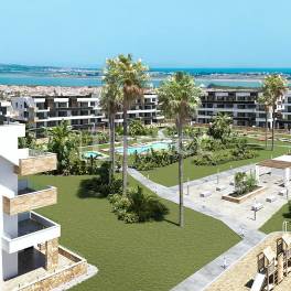Moderne 2-Slaapkamerappartementen met Terrassen en Gemeenschappelijk Zwembad in TorreviejaTorrevieja, een levendige kustplaats aan de Costa Blanca, staat bekend om zijn zoutmeren, boulevards en bruisende mediterrane levensstijl. De omgeving biedt een uitstekende mix van restaurants, winkels en recreatiemogelijkheden, waardoor het perfect is om het hele jaar door te wonen of voor een vakantie. Door de combinatie van moderne gemakken en traditionele Spaanse charme trekt Torrevieja zowel de lokale bevolking als internationale bewoners aan.Dagelijkse voorzieningen zijn op loopafstand, met supermarkten, restaurants en winkels op slechts 0,5 km afstand. Het stadscentrum ligt op 1,8 km van het complex en zandstranden zoals Playa del Cura liggen op 2,7 km afstand. Golfliefhebbers vinden La Marquesa Golf op 4,1 km van de accommodatie en La Finca Golf op 10 km afstand. Het nabijgelegen stadje Guardamar del Segura ligt op 8,8 km van Torrevieja en Orihuela op 23,5 km afstand. De luchthaven van Alicante ligt op 40 km van de appartementen en de luchthaven van Murcia op 62 km, met gunstige reisverbindingen.Het afgesloten wooncomplex bestaat uit appartementen op de begane grond met privétuinen en appartementen op de bovenste verdieping met ruime solariums. Aangelegde groene zones, wandelpaden en een groot gemeenschappelijk zwembad creëren een ontspannen omgeving en bevorderen een vriendelijke buurtsfeer, terwijl privacy gewaarborgd blijft.De appartementen te koop in Torrevieja Alicante beschikken over een open woonkamer met een volledig uitgeruste keuken. De woningen worden gemeubileerd opgeleverd met hoogwaardige apparatuur, airconditioning, elektrische rolluiken en een energiezuinig aerothermisch systeem voor warm water. De badkamers zijn voorzien van vloerverwarming, terwijl terrassen of tuinen de leefruimte naar buiten vergroten. Elke woning beschikt over een eigen parkeerplaats voor extra gemak. ALC-01125