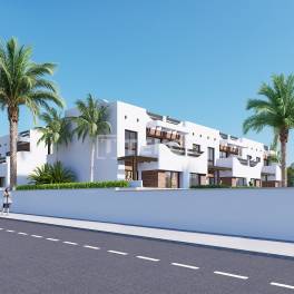 Begane Grond- en Penthouseappartementen aan Zee in Torre de la HoradadaTorre de la Horadada is een van de meest betoverende kustplaatsen van de Costa Blanca, bekend om zijn zandstranden, charmante jachthaven en een subtiele mix van lokaal karakter en modern comfort. Het biedt een ontspannen mediterrane levensstijl waar het geluid van de zee, de geur van zilte lucht en de warmte van de zon de perfecte omgeving creëren voor een vredig en elegant leven aan de kust.De appartementen in Pilar de la Horadada die te koop zijn, genieten van een uitstekende locatie op slechts 0,5 kilometer van Playa de las Higuericas. Supermarkten en restaurants bevinden zich op 0,6 kilometer, terwijl het bruisende hart van Torre de la Horadada op 1,2 kilometer afstand ligt. Pilar de la Horadada is bereikbaar binnen 3,3 kilometer en de nabijgelegen stad San Javier ligt op 11,9 kilometer van de locatie. Golfliefhebbers zullen de nabijheid van Lo Romero Golf op 8,1 kilometer en Villamartín Golf op 16,4 kilometer waarderen. Zenia Boulevard, een topbestemming voor winkelen, ligt op slechts 13,6 kilometer afstand. Het gebied is goed verbonden met het internationale verkeer, met de luchthaven van Murcia op slechts 41,9 kilometer afstand en de luchthaven van Alicante op 75,2 kilometer.Deze exclusieve, beveiligde community bestaat uit 30 zorgvuldig ontworpen appartementen, gelegen te midden van prachtig aangelegde groene ruimtes. Bewoners hebben toegang tot privé-recreatiegebieden, waaronder een paddletennisbaan en gedeelde ruimtes die zijn ontworpen voor comfort, ontspanning en gezelligheid. De urbanisatie straalt een moderne maar serene sfeer uit, ideaal voor zowel wonen het hele jaar door als voor vakantie-uitjes.Kopers kunnen kiezen uit twee elegante modellen. Appartementen op de begane grond beschikken over ruime privétuinen, ideaal om buiten te leven, terwijl penthouses beschikken over ruime dakterrassen, perfect om te zonnebaden en te genieten van een weids uitzicht. Elk appartement beschikt over twee goed geproportioneerde slaapkamers, twee moderne badkamers en een stijlvolle open woon- en eetkamer. Grote ramen zorgen voor overvloedig natuurlijk licht en het interieur is afgewerkt met hoogwaardige materialen en strakke architectonische lijnen. Een privéparkeerplaats is bij elke woning inbegrepen, wat zorgt voor gemakkelijke toegang en gemak. ALC-01070