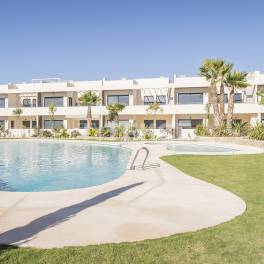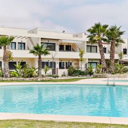 Nieuwbouw Appartementen in Innovatief Project Dichtbij Zee in TorreviejaDe appartementen zijn gelegen in Torrevieja, Alicante. De luxe appartementen liggen op slechts 300-400 meter afstand van de zee. De appartementen bieden gemakkelijke toegang tot prachtige promenades in Orihuela Costa en Torrevieja. Tevens ligt de omgeving dichtbij vele voorzieningen zoals winkels, uitvalswegen en zorgvoorzieningen, waaronder het Torrevieja Ziekenhuis.De appartementen te koop in Torrevieja Spanje, bevinden zich dicht bij de Aldi-supermarkt en diverse restaurants, op loopafstand van twee stranden met blauwe vlag en op 5,5 km van het winkelcentrum Zenia Boulevard. Binnen 15-30 minuten rijden zijn er golfbanen Villamartin, Lo Romero, Las Colinas Country Club en Campoamor. De appartementen liggen ook op 48 km van de internationale luchthaven van Alicante.De nieuwbouwappartementen zijn gelegen in een project met centrale tuin van ruim 10.000 m². In het project is er een verwarmd zwembad voor wellness, 2 andere zwembaden, paddlebanen, sportvelden, speeltuinen voor kinderen, wandelpaden, buitenfitness en een picknickplaats.Het project heeft een milieuvriendelijk ontwerp met warm water geproduceerd door een efficiënt aerothermisch systeem. Het heeft ook een geïntegreerde warmwateraccumulator van 80 liter. Dit systeem gebruikt ongeveer 300 W elektriciteit, maar levert vier keer meer energie dan het verbruikt. Voor het comfort van de bewoners zijn de appartementen ook voorzien van volledige warme en koude airconditioning en vloerverwarming in de badkamers.De appartementen hebben een ontwerp dat zich uitstrekt tot privédakterrassen, bereikbaar via een privétrap. Deze terrassen zijn goed uitgerust met waterkranen, stopcontacten en zelfs tv-aansluitingen. Daarnaast bestaat de mogelijkheid om op de terrassen een douche en jacuzzi te plaatsen.Er zijn 2 opties voor appartementen in het project. De benedenwoningen met tuin/terras en penthouses met balkons en privé dakterrassen. Het aantal kamers varieert afhankelijk van de appartement types. ALC-00281
