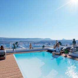 De voordeuren zijn wit gelakt en glad, en bieden veiligheid met een strakke afwerking. In sommige gebouwen is het zwembad op het dakterras geplaatst, ideaal voor het hele jaar door zon en open uitzichten.