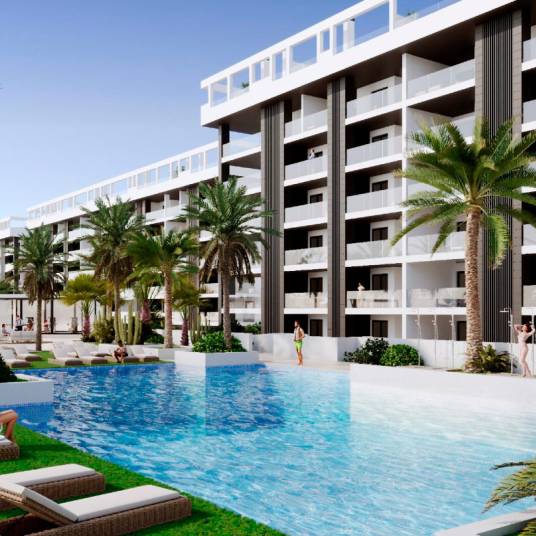 In de charmante stad Torrevieja presenteert Moraga Immo een exclusieve gemeenschap van 58 woningen die luxe aan zee opnieuw definieert. Gelegen op slechts 1 km van de kust, bieden deze woningen de mogelijkheid om elke dag wakker te worden met de zeebries en spectaculaire uitzichten. Met opties van 2 of 3 slaapkamers en 2 of 3 badkamers past elke woning zich aan de behoeften van elk gezin aan, waarbij comfort en stijl in elk detail worden gecombineerd.Het interieur van deze woningen is zorgvuldig ontworpen om een moderne en praktische sfeer te bieden. De porseleinen vloeren voegen een vleugje verfijning toe, terwijl de elektrische rolluiken zorgen voor comfort en energie-efficiëntie. De keukens zijn uitgerust met hoogwaardige apparaten, waardoor het dagelijks leven gemakkelijker wordt en koken een plezier is. De inbouwkasten optimaliseren de opbergruimte en houden het huis netjes en elegant.De buitenruimtes zijn een toevluchtsoord van rust en genot. Elke woning beschikt over privéterrassen, ideaal om te genieten van het mediterrane klimaat en de prachtige uitzichten op zee. Sommige woningen hebben ook een solarium, wat extra ruimte biedt voor buitenrecreatie. De privétuinen zijn perfect voor wie een persoonlijke groene ruimte wil, terwijl de privégarage comfort en veiligheid voor de voertuigen biedt.Deze geweldige kenmerken worden aangevuld met gemeenschappelijke ruimtes die zijn ontworpen voor het genot van alle bewoners. De gemeenschappelijke tuinen bieden een oase van natuur zonder het huis te verlaten, en het gemeenschappelijke zwembad is perfect om af te koelen op warme zomerdagen. De gemeenschappelijke garage zorgt voor veilige parkeermogelijkheden en biedt gemoedsrust en comfort voor alle eigenaren.Samenvattend bieden deze woningen in Torrevieja, op slechts 40 km van de luchthaven, een unieke kans voor degenen die op zoek zijn naar een huis dat luxe en functionaliteit combineert in een bevoorrechte kustomgeving. Mis de kans niet om de authentieke mediterrane levensstijl te ervaren. Neem contact op met Moraga Immo en ontdek uw nieuwe huis aan zee.