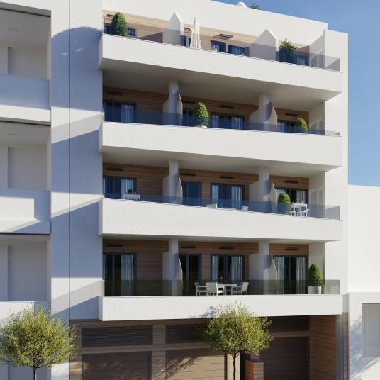 Dit charmante appartement bevindt zich in de dynamische stad Torrevieja, op slechts 0,4 km van de zee, wat het een ideale plek maakt om van het mediterrane klimaat te genieten. Met opties van 1 tot 3 slaapkamers en tot 2 badkamers is deze woning perfect voor zowel het hele jaar door wonen als voor onvergetelijke vakanties. Het maakt deel uit van een exclusieve wooncomplex dat uit 11 woningen bestaat, en biedt een moderne en comfortabele levensstijl.De gemeenschappelijke voorzieningen omvatten een spectaculair zwembad, dat de perfecte plek biedt om te ontspannen en van de zon te genieten. De bewoners hebben ook toegang tot een gemeenschappelijk dakterras, ideaal om te profiteren van de warme sfeer van de regio. Hoewel er geen uitzicht op zee is, zorgt de nabijheid van de kust ervoor dat het altijd binnen handbereik is.Het appartement biedt een privéterras, perfect om momenten in de buitenlucht te genieten. De woning is uitgerust met een porseleinen tegelvloer en inbouwkasten, die functionaliteit en een vleugje elegantie bieden. Bovendien beschikt het over een video-intercom, wat zorgt voor veiligheid en gemoedsrust.De woning is voorbereid voor de toekomstige installatie van airconditioning, zodat het comfort kan worden aangepast aan persoonlijke voorkeuren. De gemeenschap beschikt ook over een gemeenschappelijke garage, wat extra gemak biedt voor de bewoners.Samenvattend: een modern appartement in Torrevieja met alle essentiële voorzieningen voor een comfortabel leven. Het is ook strategisch gelegen op 45,0 km van de luchthaven, wat de toegang voor reizigers vergemakkelijkt. Ideaal voor wie op zoek is naar een goed gelegen woning dicht bij de zee. Mis de kans niet om deze woning aan te schaffen via Moraga Immo.