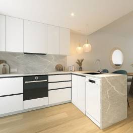 Dit project biedt appartementen met 1, 2 of 3 slaapkamers met ruime indelingen, grote terrassen op het zuiden, aangelegde tuinen en toegang tot prachtige gemeenschappelijke zwembaden. U kunt kiezen uit appartementen op de begane grond met privétuinen, appartementen op de middelste verdiepingen met ruime terrassen of penthouses met privésolaria. Er is de mogelijkheid om een privézwembad of jacuzzi toe te voegen op de begane grond of op de solaria. Alle woningen zijn voorzien van een garageplaats in de ondergrondse parkeergarage of op het bovengrondse parkeerterrein.