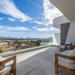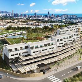 Gelegen in de prachtige plaats Finestrat, biedt deze residentie een verscheidenheid aan woonopties die aan verschillende behoeften en voorkeuren voldoen. Met in totaal 112 eigendommen kunnen toekomstige bewoners kiezen uit appartementen, duplexen, begane grond en penthouses. De locatie is bevoorrecht, aangezien het zich op slechts 5 km van de zee bevindt, waardoor men kan genieten van indrukwekkende zeezichten vanuit veel van de woningen. Deze nabijheid van de zee biedt niet alleen een spectaculaire natuurlijke omgeving, maar ook de mogelijkheid om te genieten van buitenactiviteiten en een ontspannen levensstijl aan de Middellandse Zee.De buitenruimtes van deze eigendommen zijn ontworpen om het comfort en het genot van het mediterrane klimaat te maximaliseren. Elke woning heeft een terras, ideaal om te ontspannen en te genieten van het uitzicht op zee. Bovendien beschikken de begane grond woningen over een privé tuin, wat extra ruimte biedt voor buitenplezier. Voor degenen die op zoek zijn naar een vleugje luxe, zijn er enkele woningen met een privé solarium, perfect om te zonnebaden in de privacy van uw eigen huis. De optie van een privé zwembad in bepaalde typen voegt een extra niveau van exclusiviteit en comfort toe.Het interieur van de woningen is ontworpen met een focus op comfort en moderniteit. De indelingsopties omvatten woningen met 2 en 3 slaapkamers, allemaal met 2 badkamers, wat voldoende ruimte biedt voor gezinnen van verschillende groottes. Hoogwaardige afwerkingen omvatten keramische vloeren en porseleinen tegels, die niet alleen esthetisch aantrekkelijk maar ook duurzaam zijn. De woningen zijn uitgerust met domotica, elektrische rolluiken en een video-intercom, wat een moderne en veilige levensstijl vergemakkelijkt. Bovendien beschikken ze over vloerverwarming, ingebouwde kasten en geïntegreerde apparaten, zodat elk detail is doordacht voor dagelijks comfort.De gemeenschappelijke ruimtes van de residentie zijn ontworpen om een complete en verrijkende leefervaring te bieden. Bewoners kunnen genieten van een gemeenschappelijk zwembad, perfect om te socializen en te ontspannen. Voor sportliefhebbers beschikt het complex over een padelbaan en een gemeenschappelijke fitnessruimte, wat een actieve levensstijl mogelijk maakt zonder het huis te verlaten. De aangelegde tuinen bieden een groene en rustige omgeving, ideaal voor ontspannende wandelingen. De kleintjes hebben hun eigen ruimte in de speeltuin, wat plezier en veiligheid garandeert. Bovendien biedt de residentie een gemeenschappelijke garage en parkeergelegenheid, wat comfort en veiligheid voor de voertuigen van de bewoners garandeert.