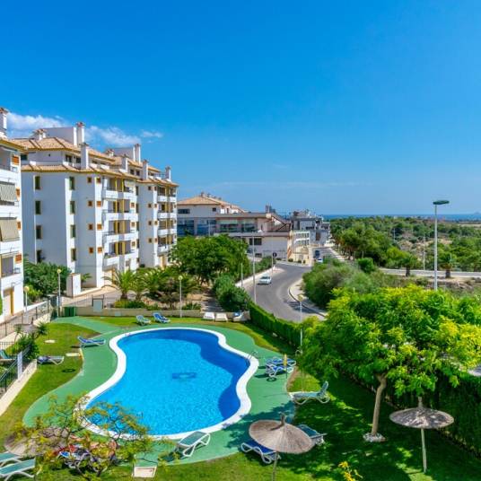 Discover this exceptional penthouse apartment located in the highly sought-after area of Las Ramblas, Orihuela Costa. Situated on the 4th floor, this bright and beautifully designed property offers a built surface of approximately 100 m², featuring 2 spacious bedrooms and 2 modern bathrooms.The apartment boasts a contemporary open-plan layout, seamlessly connecting the kitchen and living area, creating an inviting and functional space ideal for both relaxing and entertaining. Large windows allow for an abundance of natural light, enhancing the sense of space while showcasing the truly breathtaking panoramic sea views.One of the standout features of this property is the generous terrace, perfect for outdoor dining or unwinding while enjoying the Mediterranean climate. The terrace also offers the possibility of being glazed, allowing for year-round use and added versatility.The property is sold partly furnished, making it a convenient option for immediate enjoyment or as an investment opportunity. Residents also benefit from excellent community facilities, including a stunning swimming pool and beautifully maintained Mediterranean landscaped gardens.Ideally located, the apartment is surrounded by a wide range of amenities within walking distance, including bars, restaurants, supermarkets, and two renowned golf courses—offering the perfect balance of tranquillity and convenience.For more information or to arrange a viewing of this wonderful property, please do not hesitate to contact us.