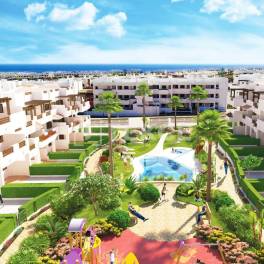 Appartementen met 2 en 3 slaapkamers in een modern complex in Almeria, SpanjeStijlvolle appartementen met uitzicht op zee zijn gelegen in Almeria, het warmste gebied van Europa met weinig regenval, wat resulteert in milde winters. Almeria geniet van meer dan 300 zonnige dagen per jaar.De appartementen te koop in Almeria, Spanje, liggen op loopafstand van het strand en alle basisvoorzieningen voor het dagelijks leven.Het complex biedt rijke faciliteiten, waaronder restaurants, een supermarkt, een sportcentrum, een gymzaal en atletiekbanen, een kinderspeeltuin, een lift, goed onderhouden tuinen, zwembaden, zowel binnen- als buitenparkeerplaatsen en bemande beveiliging.In deze moderne huizen vindt u ingebouwde airconditioning, modern meubilair, een ingerichte open keuken en eetkamer, badkamers, een en-suite badkamer, een wasruimte, een opslagruimte, uitgerust met alle witgoed, een privéauto parkeerplaats, een groot zonneterras en een solarium op het dak. LEI-00001