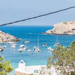 De locatie is uitzonderlijk, omringd door het kristalheldere water en de natuurlijke schoonheid waar Ibiza bekend om staat. Het huis ligt op een steenworp afstand van de zee en geniet van adembenemende uitzichten op de zonsondergang die de hemel elke avond in levendige kleuren schildert. Binnen enkele minuten bereik je enkele van de meest iconische stranden van het eiland, zoals Cala Tarida, Cala Comte en Cala Moli. Bekende strandclubs zoals Silencio bieden heerlijk eten en muziek aan de kust, terwijl de rustige sfeer van Cala Vadella zorgt voor een gevoel van intimiteit en gemeenschap. Voor zeeliefhebbers is er de mogelijkheid om een speedboot voor anker te laten liggen in de baai en de nabijgelegen steiger te gebruiken voor dagelijkse excursies, wat dit een ideaal kustverblijf maakt.