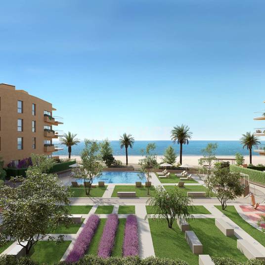 Appartementen in Cubelles Dichtbij de natuur, de zee en de stad in CubellesCubelles is een van de meest charmante steden in de regio Garraf, gelegen tussen Barcelona en Tarragona. Bekend om zijn serene stranden en rijke natuurlijke omgeving, waaronder het natuurpark Foix en mediterrane bossen, biedt het gebied ook uitstekende verbindingen met Barcelona en de luchthaven El Prat. De appartementen zijn ontworpen met een moderne, organische architectuur die prachtig past bij de kustomgeving. Grote privéterrassen bieden direct uitzicht op zee, waardoor er een licht, luchtig interieur ontstaat waar het natuurlijke licht vrijelijk stroomt. Het is de perfecte plek om te ontspannen, gasten te ontvangen of gewoon te genieten van het ritme van het leven aan zee.Appartementen te koop in Cubelles, Barcelona liggen op 50 meter van het strand en bieden directe toegang tot de boulevard en de kustlijn, op 1 km van het stadscentrum, op 1,2 km van het treinstation en op 1,5 km van de jachthaven met directe treinverbindingen naar Barcelona, Tarragona en luchthaven El Prat. Cubelles is een rustige en groene omgeving, omgeven door natuurparken en open ruimtes – perfect voor een evenwichtige levensstijl.Elk appartement is uitgerust met een volledig ingerichte open keuken, compleet met hoogwaardige apparatuur zoals een oven, magnetron, koelkast, inductiekookplaat en vaatwasser. De woonruimtes zijn voorzien van grote ramen, porseleinen vloeren en witgelakte deuren, wat zorgt voor een strakke en elegante uitstraling. De badkamers zijn voorzien van hoogwaardige keramische tegels, moderne wastafels en inloopdouches of badkuipen. Voor maximaal comfort en efficiëntie zijn de woningen voorzien van een hoogwaardig aerothermisch verwarmings- en koelsysteem en aluminium ramen met dubbele beglazing voor geluids- en temperatuurisolatie. BCN-00033