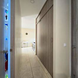 Beide slaapkamers hebben directe toegang tot het balkon. De hoofdslaapkamer is voorzien van een inloopkast en een eigen badkamer. De tweede slaapkamer, ideaal voor kinderen of gasten, grenst aan een separate badkamer in de hal. De badkamers zijn afgewerkt met inloop-regendouches en duurzame, onderhoudsvriendelijke materialen.