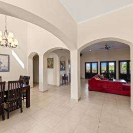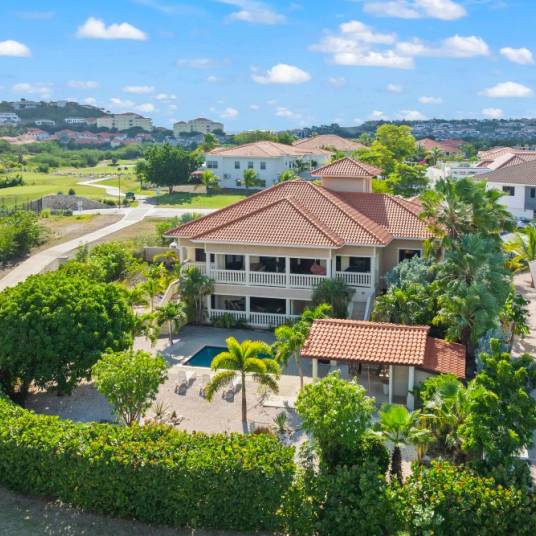 Bij aankomst maakt deze indrukwekkende villa direct een sterke eerste indruk met haar elegante mediterrane architectuur, warme aardetinten, karakteristieke dakpannen en sierlijke boogpartijen. De ruime oprit met royale parkeergelegenheid en overdekte garage onderstreept het comfortabele en hoogwaardige karakter van de woning. Door het natuurlijke verloop van de kavel is de villa verdeeld over twee verdiepingen, waarbij de bovenste verdieping het hoofdwoonniveau vormt en gelijkvloers bereikbaar is vanaf de straatzijde. Deze doordachte indeling combineert optimaal wooncomfort met functionaliteit en privacy.Op de benedenverdieping bevinden zich twee ruime, volledig ingerichte appartementen. Daarnaast beschikt de villa over een royaal zwembad, een fraai aangelegde tuin, meerdere balkons en volop privacy op eigen terrein.Het hoofdwoonniveau verwelkomt u in een royale, open woon- en eetkamer met hoge plafonds en elegante boogconstructies die zorgen voor een gevoel van ruimte en luxe. De lichte tegelvloeren en neutrale kleurstelling creëren een tijdloze, stijlvolle sfeer. De woon- en eetkamer sluiten naadloos op elkaar aan en vormen samen een ideale leefruimte voor zowel dagelijks comfort als het ontvangen van gasten.Op deze verdieping bevindt zich tevens de master bedroom met en-suite badkamer. Deze is voorzien van een ligbad, een ruime inloopdouche en grote inbouwkasten. Vanuit de master bedroom heeft u directe toegang tot het balkon. De twee overige slaapkamers delen een comfortabele, volledig uitgeruste badkamer. Daarnaast is er een extra kamer aanwezig, die uitstekend kan dienen als slaapkamer, werkkamer of hobbyruimte.De open keuken is ruim en praktisch ingedeeld en voorzien van alle benodigde inbouwapparatuur. De gezellige breakfast bar maakt dit de ideale plek om de dag ontspannen te beginnen met een ontbijt.Een absoluut hoogtepunt van deze villa is het zeer royale balkon van maar liefst 46 m². Hier is meer dan voldoende ruimte voor een grote eettafel én een comfortabele loungeset. De constante verkoelende bries, het adembenemende uitzicht en de hoge mate van privacy zorgen samen voor een onmiskenbaar wauw-gevoel. Dit is de perfecte plek om nieuwe herinneringen te creëren tijdens sfeervolle dineravonden of gezellige momenten met familie en vrienden.De benedenverdieping is bereikbaar via zowel een buitentrap als een interne trap en biedt plaats aan twee zelfstandige appartementen. Beide appartementen zijn volledig uitgerust en beschikken over twee slaapkamers, een comfortabele leefruimte en een ruime opslagruimte. Aan de voorzijde bevindt zich een gezellige, gelijkvloerse buitenruimte met uitzicht op en directe toegang tot het zwembad, dat naadloos aansluit op dit niveau.De appartementen bieden bovendien een hoge mate van privacy, waarbij de buitenruimtes duidelijk van elkaar zijn gescheiden. Hierdoor zijn ze uitermate geschikt voor gasten die langer verblijven en toch beschikken over een eigen, comfortabele plek.Het zwembad is centraal gelegen in het tuinontwerp. Het omliggende terras biedt volop ruimte voor ligbedden, barbecue- en relaxzones. Kortom, deze tuin heeft alles om optimaal te genieten van het Caribische buitenleven. Het ruime poolhouse met eigen toilet- en douchevoorzieningen, evenals de mogelijkheid voor een buitenkeuken, maakt het geheel compleet.Bekijk ook de plattegrond van deze villa om een goed beeld te krijgen van de indeling en inrichting. Voor meer informatie of een bezichtiging op locatie kunt een contact opnemen met Derek Plagman.