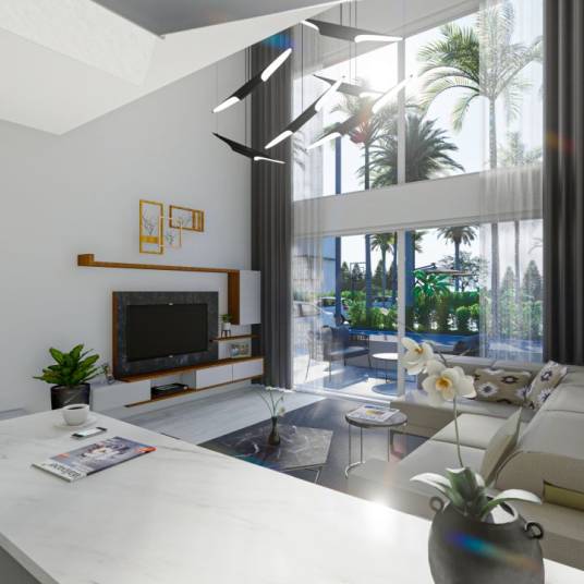 Het project, dat in totaal 184 stijlvolle units heeft, biedt een moderne leefruimte met studio’s en 1+1 loftappartementen. Elk huis heeft ingebouwde kasten, een volledig uitgeruste keuken en airconditioninginfrastructuur.