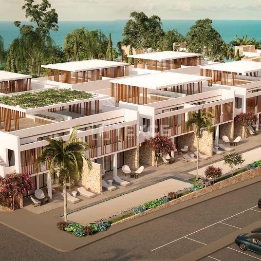 Apartementen in een Aan Zee Gelegen Complex met Toegang tot een Privéstrand in Gazimağusa TatlısuTatlısu, een charmant dorp op het eiland Cyprus, maakt administratief deel uit van Gazimağusa, maar ligt op korte rijafstand van de stadscentra van İskele en Girne. De regio herbergt veel ontwikkelde complexen. Tatlısu, dat voornamelijk uit een- of twee verdiepingen tellende gebouwen bestaat, biedt haar bewoners een vredig leven met 300 dagen zon per jaar, turquoise zee en kristalhelder water. Noord-Cyprus, een van de veiligste landen ter wereld, is ook een leider op het gebied van onderwijs en toerisme. Deze charmante regio heeft veel historisch en cultureel belangrijke bezienswaardigheden.De apartementen te koop in Noord-Cyprus, Tatlısu, bevinden zich in een aan zee gelegen complex en liggen op 50 meter van de Girne-Tatlısu snelweg, 3 km van Küçükerenköy Beach, 6 km van Tatlısu, 10 km van Esentepe Public Beach, 18 km van Korenium Golf Club, 19 km van Alagadi Turtle Beach, 27 km van Girne, 30 km van İskele, 38 km van Gazimağusa, 50 km van Ercan International Airport en 70 km van Larnaca International Airport.Het complex, gebouwd op een enorm terrein van 400.000 m², bestaat uit 3 fasen. Het project biedt verschillende voorzieningen, waaronder wijngaarden, een eigen wijnkelder, fine dining restaurants, cafés & bars, een jachthaven, een amfitheater, een schoonheidscentrum, Turkse baden, sauna’s, spa’s, een sportschool, 8 km aan natuurlijke wandelpaden en kantoren voor het beheer.Elke flat heeft een aangewezen parkeerplaats. De blokken in de aangelegde tuin zijn twee verdiepingen hoog. De appartementen op de begane grond beschikken over tuinterrassen, terwijl de appartementen op de bovenste verdieping over dakterrassen beschikken. Alle appartementen hebben een open keuken. In de bouw worden hoogwaardige materialen gebruikt, en in de keuken, badkamer & toilet en slaapkamers zijn inbouwkasten aanwezig. Het project is uitgerust met verschillende comfortverhogende kenmerken, waaronder een centraal satellietsysteem, internetinfrastructuur en multi-systeem airconditioning. ECN-00485