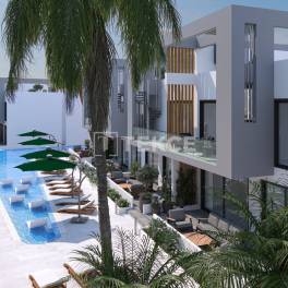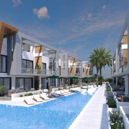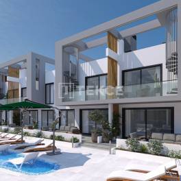 Vastgoed te koop in een complex met zwembad in Yeniboğaziçi GazimağusaGazimağusa is een van de meest ontwikkelde steden van Cyprus, een mediterraan eiland vol historisch en cultureel erfgoed. Yeniboğaziçi belooft een leven in de CittaSlow-regio. Het valt op als een regio met gebouwen van twee of drie verdiepingen en heeft vooral de voorkeur van buitenlandse investeerders. Yeniboğaziçi is ook de thuisbasis van dagelijkse en sociale voorzieningen zoals markten, stranden, ziekenhuizen, scholen, enz.Vastgoed te koop in Noord-Cyprus ligt op 400 meter van de gemeente Yeniboğaziçi, 1,5 km van het Salamis-bos en het Near East College, 2,5 km van de oude stad Salamis en het strand van Bedi, 3 km van het strand van Koca Reis, 6 km van het staatsziekenhuis van Gazimağusa, 7 km van Universiteit van de oostelijke Middellandse Zee, 8,5 km naar het centrum van Gazimağusa, 10 km naar het Pera MacKenzie-strand, 11 km naar de haven van Gazimağusa en Palm Beach, 45 km naar de luchthaven Ercan en 58 km naar de luchthaven van Larnaca.Het complex, gebouwd op 5.500 m² grond, bestaat uit elf moderne blokken van twee verdiepingen. In het midden van de blokken ligt een gemeenschappelijk zwembad met een indrukwekkend landschapsgebied. Het complex met een beveiligingscamerasysteem heeft voor elke woning gereserveerde parkeerplaatsen.De woningen zijn ontworpen met een ruime open keuken. Bij woningen met twee slaapkamers heeft één van de slaapkamers een eigen badkamer. Terwijl woningen op de begane grond een tuinterras hebben, hebben penthouses een dakterras met zomerkeuken. Er zijn voorzieningen zoals een centraal satellietsysteem, internetinfrastructuur en airconditioninginfrastructuur in de panden. ECN-00271