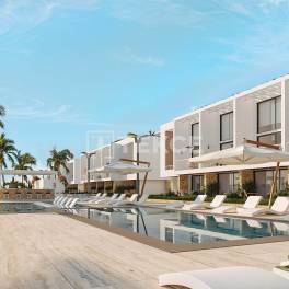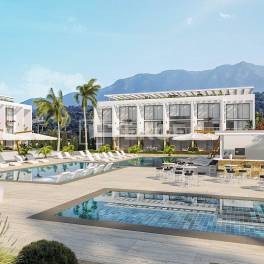 Appartementen te Koop Binnen een Wooncomplex in Esentepe GirneGirne, Noord-Cyprus valt op door zijn rustige mediterrane sfeer, natuurlijke schoonheid en investeringspotentieel. Met zijn historische charme, een kustlijn met een jachthaven en een bruisend sociaal leven is Girne een aantrekkelijke bestemming om zowel te wonen als te investeren. Esentepe, gelegen nabij het stadscentrum, is een uniek gebied waar natuur en kustleven samenkomen. Het gebied ligt op slechts een korte rijafstand van Girne en staat bekend om zijn ongerepte baaien, onbedorven stranden en golfbanen. Ook vind je er natuurlijke bezienswaardigheden zoals Alagadi Turtle Beach, waar caretta caretta-schildpadden hun eieren leggen. Deze kustregio combineert op harmonieuze wijze rust en modern wonen.De appartementen te koop in Noord-Cyprus, Girne liggen direct aan zee en grenzen aan de snelweg Girne-Esentepe. Afstanden: 1,5 km tot de dichtstbijzijnde jachthaven, 3 km tot Esentepe Beach, 4,5 km tot de Korineum Golf Club, 8 km tot Alagadi Turtle Beach, 15 km tot het stadscentrum van Girne, 21 km tot Doğa College, 22 km tot de Universiteit van Girne en het Dr. Suat Günsel Ziekenhuis, 24 km tot de haven van Girne, 36 km tot de luchthaven van Ercan en 80 km tot de luchthaven van Larnaca.Dit multifunctionele project aan zee biedt een waardevol concept dat ideaal is voor zowel wonen als investeren. Naast woonunits zijn er commerciële ruimtes opgenomen in het project, waardoor het gebied verandert in een zelfstandige sociale hub. Het project beschikt over gemeenschappelijke zwembaden, een wellness- en spacentrum, Turks bad, sauna, spa, fitnesscentrum, yoga- en recreatiezones, alles ontworpen om de levensstijl van bewoners te verrijken. Het privéstrand wordt aangevuld met restaurants en cafés waar je op elk moment van de dag kunt ontspannen. Daarnaast beschikt elk appartement over een eigen parkeerplaats. De appartementen hebben een elegante architectuur met open keukens en ruime indelingen. Appartementen op de begane grond beschikken over privé tuinterrassen, terwijl penthouses voorzien zijn van panoramische dakterrassen met zeezicht. Comfort wordt verhoogd door geïntegreerde VRF-airconditioningsystemen, een centraal satellietsysteem en internetinfrastructuur in elke unit. ECN-00528