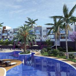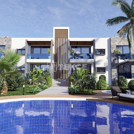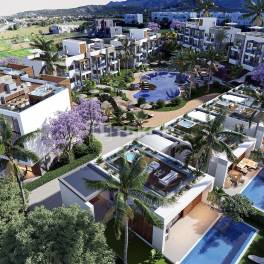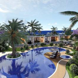 Gemeubileerde Appartementen met Panoramisch Uitzicht in Bahçeli GirneHet eiland Cyprus belooft zijn inwoners een vredig leven midden in de Middellandse Zee met 300 dagen per jaar zonnig weer. De stad Girne ligt aan de noordkust van het eiland en wordt beschouwd als de onderwijs- en toeristische hoofdstad van Cyprus. Ten oosten van het centrum van Girne ligt de regio Esentepe, een van de meest geliefde locaties voor Europese investeerders van de afgelopen jaren. Het gebied is de thuisbasis van een aantal goed ontwikkelde complexen, restaurants met een internationale keuken, supermarkten en apotheken. Met zijn turquoise zee, kristalhelder water en gouden zand is Esentepe een schilderachtig mediterraan stadje.De appartementen te koop in Noord-Cyprus liggen aan de snelweg Girne – Esentepe, 450 m van het dichtstbijzijnde zandstrand, 3,5 km van Esentepe Beach, 11 km van Korenium Golf Club, 15 km van Alagadi Turtle Beach, 22 km van Kyrenia, 28 km van Dr. Suat Günsel Hospital en Universiteit van Girne, 30 km van Girne Port, 49 km van Ercan Airport en 78 km van Larnaca International Airport.Het complex bestaat uit in totaal 5 blokken en 4 bungalows. Er is voor elk appartement een eigen parkeerplaats rondom het complex. De aangelegde tuin heeft een gemeenschappelijk zwembad, café en restaurant. Appartementen op de begane grond hebben een tuinterras en penthouse-appartementen hebben een dakterras. Alle appartementen hebben een open keuken en er is een optie voor een en-suite badkamer, afhankelijk van het type appartement. Er zijn kledingkasten in alle kamers, badkamers en toiletten en in de keuken. Bovendien krijgen alle appartementen witgoed en een meubelpakket cadeau. Comfortverhogende voorzieningen zoals een centraal satellietsysteem, internetinfrastructuur en airconditioning zijn inbegrepen in deze bevoorrechte appartementen. ECN-00507