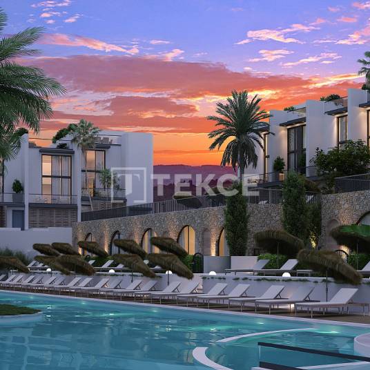 Appartementen in een Complex met Vakantie-Stijl Concept in TatlısuHet eiland Cyprus is het derde grootste eiland in de Middellandse Zee. Het staat bekend als een van de veiligste bestemmingen ter wereld en ontwikkelt zich snel als een centrum voor toerisme en onderwijs. Tatlısu, gelegen in het noordoosten van het eiland, is administratief verbonden met Gazimağusa en ligt op korte rijafstand van de stadscentra van Girne en İskele. Tatlısu is de afgelopen jaren een van de populairste gebieden voor buitenlandse investeerders geworden, met een mix van twee-onder-een-kap villa’s en geavanceerde residentiële complexen. Met zijn turquoise zee, kristalhelder water, gouden stranden en 300 zonnige dagen per jaar, is Tatlısu een waar paradijs op aarde. De regio biedt ook tal van historische locaties, restaurants, openluchtspeelplaatsen en culturele attracties.De appartementen te koop in Tatlısu, Noord-Cyprus, liggen op 950 meter van de hoofdweg Girne-Tatlısu, 1,5 kilometer van de zee, 4,5 kilometer van Zambak Beach, 10 kilometer van Satin Bay Beach, 20 kilometer van Esentepe Beach, 27 kilometer van Korineum Golf Club, 32 kilometer van İskele Long Beach, 38 kilometer van Girne, 50 kilometer van Gazimağusa, 60 kilometer van de internationale luchthaven van Ercan en 70 kilometer van de internationale luchthaven van Larnaca.Het complex, gebouwd op een grondoppervlak van 41.500 m², bestaat uit drie fasen en bevat in totaal 134 appartementen en 22 villa’s in twee verdiepingen. Het terrein is zorgvuldig ontworpen en biedt landschaps- en ruime groene gebieden, samen met gedeelde faciliteiten zoals cafés, bars, restaurants, binnen- en buitenzwembaden, een fitnesscentrum, Turkse hamam, sauna, spa, massageruimtes, fiets- en wandelpaden, 24/7 buggy- en technische diensten, een eerste hulpcentrum, kapsalon en schoonheidscentrum, supermarkt, wasserette, vergaderruimtes, verhuur- en managementkantoren, opslagruimten en kluisjes.De vakantie-appartementen zijn beschikbaar in studio’s, 1-slaapkamer en 2-slaapkamer loft configuraties. Appartementen op de begane grond hebben tuinterrassen, terwijl appartementen op de bovenste verdieping dakterrassen hebben. Alle appartementen hebben open keukens met ingebouwde keukens, slaapkamers en badkamerkasten. De ruime appartementen zijn uitgerust met centrale internetinfrastructuur, airconditioningsystemen, een centraal generator systeem en centrale satellietsysteem infrastructuur. ECN-00483