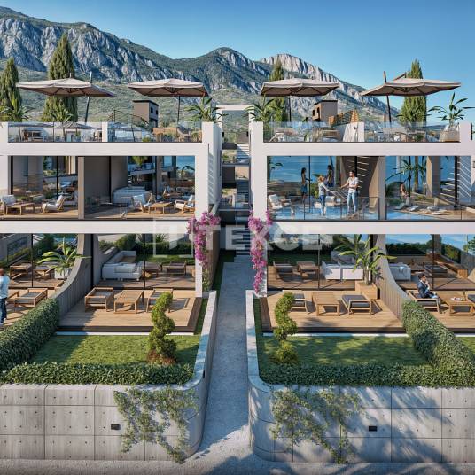 Appartementen in een Complex Dichtbij alle Voorzieningen in LaptaLapta is een kustplaats in het westen van Noord-Cyprus, rijk aan natuur en geschiedenis. Lapta, waarvan de oude naam “Lambousa” was, heeft een lange geschiedenis die teruggaat tot de Byzantijnse en Romeinse periodes. De regio valt op door zijn diepblauwe mediterrane landschap, wandelpaden in de uitlopers en natuurlijke schoonheden. Lapta biedt bezoekers ook een scala aan sociale voorzieningen zoals restaurants, cafés en strandclubs. De rustige sfeer van Lapta biedt bezoekers een aantrekkelijke omgeving om hun tijd hier door te brengen.Appartementen te koop in Noord-Cyprus Girne liggen op 630 m van de hoofdweg en het openbaar vervoer, 680 m van de zee en het zandstrand, 720 m van de supermarkt, 1 km van het gebied met wereldkeukens, bars en restaurants, 5 km van internationale scholen en hogescholen, 6 km van hotels, casino’s en entertainmentcentra, 6,2 km van internationale universiteiten, 12 km van het stadscentrum van Kyrenia, 33,2 km van het stadscentrum van Nicosia, 70 km van Ercan International Airport, 94,7 km van de luchthaven van Larnaca.Er is een veiligheidsbarrièresysteem bij de ingang van het terrein, 24/7 beveiliging, parkeerplaatsen gereserveerd voor elk appartement en een groot zwembad voor gemeenschappelijk gebruik op het terrein met gemeenschappelijke ruimten. Alle appartementen zijn ontworpen met 2 slaapkamers in de site, die zal worden aangelegd. Appartementen op de begane grond hebben een privétuin. De appartementen op de begane grond hebben een ruime woonkamer en open keuken, terras en tuin, 2 slaapkamers en een gemeenschappelijke badkamer en toilet. De appartementen op de bovenste verdieping hebben een dakterras en uitzicht op zee. De jacuzzi-infrastructuur op het dakterras, airconditioninginfrastructuur, satelliet- en internetinfrastructuur, video-intercomsysteem behoren tot de voorzieningen die het comfort van de appartementen verhogen. De appartementen, met een hoog potentieel aan huurinkomsten in buitenlandse valuta op korte en lange termijn, trekken de aandacht van toeristen tijdens het vakantieseizoen. ECN-00480