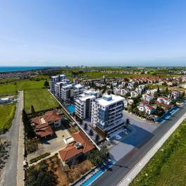 Appartementen Dicht bij de Zee in İskele, Noord-CyprusDe Iskele-regio van Cyprus ligt aan de noordoostkust van het eiland. Iskele stond op de eerste plaats in de lijst van meest geschikte kustgebieden voor investeringen van het wereldberoemde tijdschrift Forbes. De regio, die vooral de voorkeur heeft voor investeringen, ligt op korte rijafstand van Gazimağusa, Lefkoşa en Girne. İskele beschikt over vele faciliteiten zoals; restaurants, uitgaansgelegenheden, markten, supermarkten, apotheek en ziekenhuis.Appartementen te koop in İskele, Noord-Cyprus liggen op 450 m van de snelweg İskele-Karpaz, 1 km van de zee, 2,5 km van İskele, 4 km van MacKenzie Bay, 5 km van Pera MacKenzie Beach&Club, 13 km van Near East College , 16 km van het Gazimağusa State Hospital, 17 km van de Eastern Mediterranean University, 47 km van de luchthaven Ercan en 73 km van de internationale luchthaven van Larnaca.De te koop staande appartementen bevinden zich in 5 blokken van elk vijf verdiepingen. Het complex beschikt over een gemeenschappelijke tuin met beveiligingscamera’s. Voor elk appartement is er een buitenparkeerplaats. Het complex beschikt over een buitenzwembad, restaurant en café, verhuurkantoor en winkels.Alle appartementtypes zijn open ontworpen. De appartementen zijn voorzien van keukenkasten, badkamer- & toiletkasten en inbouwkasten. Daarnaast zijn er comfortverhogende voorzieningen zoals centraal satellietsysteem, internetinfrastructuur, airconditioninginfrastructuur en intercomsysteem ECN-00425