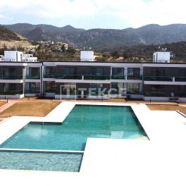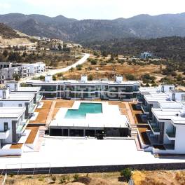 Appartementen met Zee en Bergzicht in Noord-Cyprus GirneGirne, gelegen aan de noordkust van het mediterrane juweeltje Noord-Cyprus, is een van de regio’s waar de historische en culturele rijkdom van het eiland het meest levendig is. Met zijn heldere zee, comfortabele woonruimtes en diverse sociaal-culturele activiteiten valt deze stad op als een van de meest populaire bestemmingen op het eiland.De appartementen te koop in Noord-Cyprus Girne, liggen op 200 meter van de hoofdweg Girne-Karpaz, 600 meter van de zee, 3 kilometer van het openbare strand van Esentepe, 4 kilometer van het strand van Küçükerenköy, 7 kilometer van de gemeente Esentepe, 12 kilometer van de Alagadi-schildpad Strand, 23 kilometer van Girne, 34 kilometer van Ercan Airport en 78 kilometer van Larnaca International Airport.Deze appartementen maken deel uit van een project van 8.500 vierkante meter grond met 3 blokken met in totaal 66 appartementen. Het complex, omgeven door de natuur, biedt voorzieningen zoals speciale parkeerplaatsen voor elk appartement, een gemeenschappelijk zwembad, een kinderbad, een bar bij het zwembad, een kinderspeelplaats, sauna, stoombad, massagesalon, fitnessruimte en Turks bad.De appartementen zijn ontworpen in een 1+1-kamerindeling en beschikken over een entree, vestibule, open keuken, woonkamer en slaapkamer met hoogwaardige keramische vloeren. De ruime woonkamer biedt toegang tot het balkon, bij penthouse-appartementen is split-terrasgebruik mogelijk.De appartementen zijn voorzien van comfortverhogende voorzieningen, zoals een centraal satellietsysteem, internetinfrastructuur en airconditioninginfrastructuur. ECN-00207