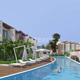 Appartementen met Berg- en Zeezicht in GirneGirne is een prestigieuze woonplaats aan de kust in Noord-Cyprus. De stad is de thuisbasis van verschillende internationale universiteiten en luxe woonprojecten. Girne trekt lokale en buitenlandse investeerders en bezoekers aan. Bahçeli is een populaire wijk op korte afstand van het stadscentrum. Bahçeli biedt enkele van de meest selectieve projecten van de afgelopen jaren. Hier is sprake van een modern perspectief met korte gebouwen en chique architectuur.De appartementen in Noord-Cyprus, Girne bieden een centrale locatie. De appartementen liggen op 200 m van de zee, 1,2 km van Esentepe Strand, 3,8 km van Esentepe, 11 km van Alagadi Turtle Strand, 20 km van Girne Centrum, 36 km van de luchthaven Ercan en 78 km van de internationale luchthaven van Larnaca.De appartementen beschikken over een moderne woonruimte op een totale grond van 30.000 m². Er zijn 14 blokken met elk 2 verdiepingen. Het complex is rijk aan functies. Er zijn hier 4 zwembaden, waarvan één met een zandstrand. Het project biedt ook fitness, 24/7 beveiliging, buitenparkeergelegenheid en SPA.De begane grond van de blokken bestaat uit studio’s en appartementen met 1 slaapkamer. Op de bovenste verdiepingen zijn loftappartementen met 2 slaapkamers. De appartementen op de begane grond bieden ruime ruimtes met privéterrassen. Elk appartement heeft een open keuken met een moderne uitstraling. De loftappartementen met 2 slaapkamers hebben een eigen badkamer. Het project biedt satelliettelevisie, internetinfrastructuur, airconditioning en goed ontworpen keuken- en badkamermeubels. ECN-00260