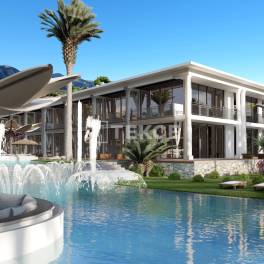 Appartementen met zeezicht te koop in Tatlısu GazimağusaCyprus, het derde grootste eiland van de Middellandse Zee, is van groot belang op het gebied van onderwijs en toerisme. Het herbergt vele internationale universiteiten en vijfsterrenhotels. Tatlısu, de kustplaats van Noord-Cyprus, staat bekend als de parel van Gazimağusa en trekt de aandacht door de nabijheid van het centrum van Girne. Dankzij de laagbouw is het de afgelopen jaren een aantrekkelijke regio geworden voor buitenlandse investeerders.Appartementen te koop in Noord-Cyprus liggen op 150 meter van de zee, 450 meter van de weg Girne-Karpaz, 3,5 km van het strand van Küçükerenköy, 10 km van het strand van Esentepe, 20 km van het schildpaddenstrand van Alagadi, 28 km van het centrum van Girne, 46 km naar de luchthaven van Ercan en 70 km naar de luchthaven van Larnaca.Het complex, gebouwd op 90.000 m² grond, bestaat uit twee fasen. Het omvat verwarmde binnen- en buitenzwembaden, een fitnesscentrum, een tennisbaan, een SPA, een Turks bad, een massageruimte, een restaurant, een café, een strandbioscoop, een aangelegde tuin en een parkeerplaats buiten voor elk appartement.Appartementen met één slaapkamer zijn volledig ingericht. De appartementen op de begane grond hebben een balkon, terwijl de penthouses een ruim terras hebben. Elk appartement beschikt over keuken- en badkamerkasten, keramische vloeren, een centraal internetsysteem, centrale satellietsysteeminfrastructuur en een airconditioningsysteem. ECN-00278