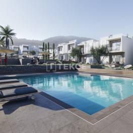 Appartementen met zeezicht op loopafstand van de zee in Noord-Cyprus GirneGirne, het populaire district van Noord-Cyprus, is het toeristische en educatieve centrum van het eiland met zijn internationale universiteiten en luxe hotels. De regio Karşıyaka in het westen van Girne biedt een rustig leven in contact met de natuur. Het trekt de aandacht van investeerders door de nabijheid van het stadscentrum, de natuurlijke schoonheid, het onderwijs en de sociale mogelijkheden. Karşıyaka onderscheidt zich als een speciale regio die het rustige leven combineert met moderne voorzieningen.De appartementen te koop in Noord-Cyprus Girne liggen op 200 m van de hoofdweg, 500 m van het dichtstbijzijnde strand, 1,2 km van het Güzelyalı-strand, 1,5 km van het centrum van Karşıyaka, 2,6 km van het Sina-klooster, 13 km van de Malatya-waterval, 16,8 km van de Amerikaanse universiteit van Girne, 18 km van het centrum van Girne, 40 km van de golfclub Korineum, 60 km van de luchthaven Ercan, 96 km van de luchthaven van Larnaca en 138 km van de luchthaven van Paphos.Dit project, dat in totaal 104 woningen omvat, biedt verschillende opties. Het project bestaat uit appartementen met 1 slaapkamer, 24 appartementen op de begane grond met een eigen tuin en 24 penthouses met terrassen. Daarnaast zijn er 56 appartementen met 2 slaapkamers. De helft van de appartementen met 2 slaapkamers bevindt zich op de begane grond en de andere helft op de bovenste verdieping.Er is een privézwembad bij 8 appartementen in blok E. Het project heeft een buitenparkeerplaats voor alle voertuigen. Om een leven te bieden dat verweven is met de natuur, zijn er ook biologische landbouwgebieden binnen het complex. Er zijn ook 3 verschillende zwembaden, spa en wellnesscentra, een golfbaan en een fitnessruimte in het complex.Het complex heeft een privégedeelte bij Vasilia Beach Club en het vervoer naar het strand wordt verzorgd door een ringdienst. Het project biedt ook verhuurbeheerdiensten. Dit project, dat zich onderscheidt als een ideale optie voor wie op zoek is naar investeringsmogelijkheden, trekt de aandacht met zijn brede scala aan faciliteiten en verschillende woonopties.In de appartementen met open keukens worden eersteklas keramische vloeren en laminaat gebruikt. Alle appartementen op de begane grond hebben een eigen tuin. Sommige appartementen met 2 slaapkamers op de begane grond hebben een privézwembad. Penthouse appartementen hebben terrassen en jacuzzi’s. De badkamers hebben vloerverwarming. Er zijn ook comfortvoorzieningen zoals centrale internetinfrastructuur, satelliettelevisie, generator en airconditioning in de appartementen. ECN-00293