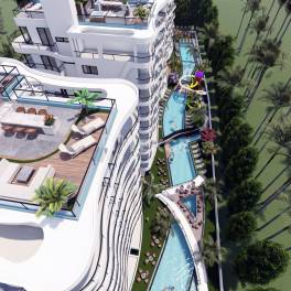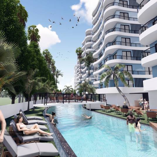 Vastgoed op Loopafstand van de Zee in Noord-Cyprus İskeleİskele ligt in het noordoosten van het eiland Cyprus. İskele biedt een aantal van de mooiste stranden van het eiland. Het gebied biedt kristalhelder zeewater, zandstranden en een heerlijk klimaat.Het is door Forbes aangewezen als een van de meest winstgevende investeringscentra en İskele is ook een ideale vakantiebestemming. Long Beach is een populaire bestemming op 15 minuten rijden van het Gazimağusa Centrum en internationale scholen.De vastgoed te koop in Noord-Cyprus, İskele liggen op 500 m van het stadscentrum, 1,7 km van de zee, 2 km van MacKenzie Bay Beach, 2,5 km van Pera MacKenzie Beach & Club, 11 km van Nabij Oost-College, 15 km van Gazimağusa staatsziekenhuis, 16 km van East Mediterranean Universiteit, 17 km van Gazimağusa stadscentrum 19 km van de haven van Gazimağusa, 46 km van de luchthaven van Ercan en 70 km van de internationale luchthaven van Larnaca.Het project is gelegen op 10.000 m² grondstukken. Hier bevinden zich 7 woonblokken. Het complex biedt een prachtig aangelegde gemeenschappelijke tuin, speeltuinen, zwembaden, een aquapark en een poolbar. Elk vastgoed in het complex heeft een gereserveerde parkeerplaats.Het project met liften biedt appartementen met 2 en 3 slaapkamers te koop aan. Het vastgoed heeft een modern en ruim interieur. De keukens hebben een open ontwerp. Het vastgoed met 2 slaapkamers heeft 1 balkon en het vastgoed met 3 slaapkamers heeft er 2. De vloeren zijn bedekt met eerste-kwaliteit keramiek. Voor een comfortabele leefruimte zijn de eigendommen verrijkt met satelliet-tv’s, internet- en airco-infrastructuur en visuele intercomsystemen. ECN-00259