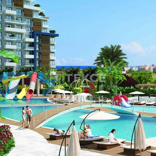 Appartementen met zwembad in Noord-Cyprus İskele met prachtig uitzicht op zeeİskele, het paradijselijke district van Noord-Cyprus is getuige geweest van verschillende beschavingen die hun handtekening hebben achtergelaten in een architectonische schat. Iskele biedt waardige investeringsmogelijkheden zoals het tijdschrift Forbes adviseerde. Met een rustige leefomgeving, İskele belooft een rustig leven met gemakkelijke toegang tot historische bezienswaardigheden, wonderen van moeder natuur, en de schijnbaar eindeloze zee.Appartementen te koop in Noord-Cyprus liggen op loopafstand van de zee. Het complex ligt op 600 m van Mackenzi Bay, 1,5 km van MacKenzie Beach& Club, 2 km van het stadscentrum, 10 km van Salamis Ruins, 12 km van Tombs of the Kings, 15 km van Gazimağusa de zeehaven, 18 km van Othello’s Tower, 21 km van Kantara Castle, 47 km van Ercan International Airport en 70 km van Larnaca International Airport.Het project beschikt over 14.870 m² groene percelen en gebieden om te chillen. Het complex is verrijkt met allerlei denkbare voorzieningen zoals een aquapark, café, restaurant, poolbar, kinderzwembad, basketbal- en tennisbaan, fitnessruimte binnen en buiten, sauna, SPA, kinderspeelplaats, gemeenschappelijke tuin, sociale club, paardrijclub, barbecueplaats, parkeerplaats binnen en buiten, kapper en markt.Het complex biedt studio’s, appartementen met één slaapkamer en appartementen met twee slaapkamers. Er zijn ook opties voor grote gezinnen. De flats hebben unieke, chique ontwerpen waarin hoogwaardige materialen samenkomen. In keukens, banken en kasten; in slaapkamers, ingebouwde kasten met spiegels; en in badkamers, de douchecabines, keramiek en tegels samen met alle badkameraccessoires creëren een harmonisch visueel beeld dat het chique concept van de appartementen bevordert. Je kunt ook een optionele jacuzzi aan je balkon toevoegen. De appartementen zijn uitgerust met een centraal satellietsysteem, internetinfostructuur en airconditioning. ECN-00019