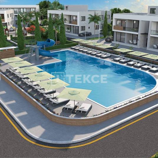 Woningen in een Complex Dichtbij de Zee en het Stadscentrum in GazimağusaYeniboğaziçi is een regio op slechts een paar minuten afstand van het Long Beach-gebied, waar de beroemdste stranden van het eiland Cyprus zich bevinden. Yeniboğaziçi heeft de CittaSlow-titel. Hoewel er in de regio veel dagelijkse voorzieningen zijn, zoals particuliere hogescholen, restaurants en markten, zijn er ook veel historische en toeristische voorzieningen, zoals de oude stad Salamis, de Barnabas-kerk en de Tombes van de Koningen.De woningen te koop in Noord-Cyprus Gazimağusa zijn gelegen naast de bushalte, 70 meter van de apotheek, 190 meter van de markt, 200 meter van het Near East College en Ziekenhuis, 650 meter van de hoofdweg Gazimağusa – Bafra, 1,5 km van Bedi’s Beach, 2 km van Gazimağusa, 4,5 km van het Gazimağusa Staatsziekenhuis, 6 km van de Eastern Mediterranean University, 8 km van Long Beach, 8,5 km van de haven van Gazimağusa, 11 km van het centrum van Gazimağusa, 14 km van het centrum van Iskele, 44 km van Ercan Luchthaven, 59 km van Karpaz Gate Marina en 60 km van de luchthaven van Larnaca.Het project met 24/7 beveiliging is gebouwd op een perceel van 13.000 m² bestaande uit appartementen, villa’s en winkels. De woningen zijn ontworpen met verschillende aantallen slaapkamers, variërend van 1 tot 3. Sommige woningen met 2 slaapkamers zijn ontworpen in de architectonische stijl van een loft, met 2 verdiepingen en trappen. Alle woningen hebben open keukens en zijn uitgerust met keukenkasten, keramische vloeren, badkamertegels en kasten, en kasten in de slaapkamers. Daarnaast zijn er veel comfortverhogende voorzieningen zoals een centraal satellietsysteem, internetinfrastructuur en airconditioninginfrastructuur. ECN-00143