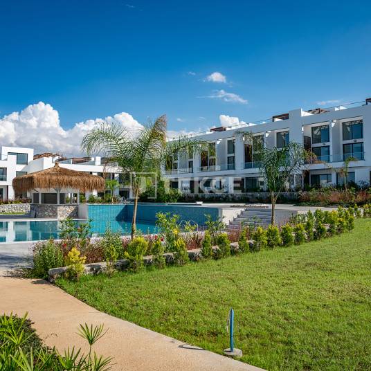 Instapklare appartementen met zeezicht in Noord-Cyprus GirneDe regio Girne, met zijn unieke uitzicht op zee op het noordelijke deel van het eiland Noord-Cyprus, staat bekend als de hoofdstad van toerisme en onderwijs. De regio Esentepe, gelegen ten oosten van Girne, is de afgelopen jaren uitgegroeid tot een van de meest geprefereerde locaties onder buitenlandse investeerders. Esentepe beschikt over talloze stranden, geavanceerde complexen, restaurants, jachthavens en golfbanen. Het is gunstig gelegen op slechts een klein eindje rijden van het stadscentrum van Girne.De appartementen te koop in Noord-Cyprus Girne, liggen op 150 m afstand van de zee, 2,4 km van het strand van Esentepe, 11 km van de Korenium Golf Club, 13 km van het Alagadi Turtle Beach, 21 km van Girne, 28 km van het Suat Günsel-ziekenhuis en Girne Universiteit, 29 km van de haven van Girne, 34 km van de luchthaven Ercan en 78 km van de internationale luchthaven van Larnaca.De appartementen binnen het complex zijn instapklaar en beschikbaar met afbetalingsplan. Het complex bestaat uit vijf blokken van twee verdiepingen, elk appartement heeft een eigen parkeerplaats en in het midden van de blokken bevindt zich een gemeenschappelijk zwembad.Het project omvat een aangelegde tuin waar aquaponic-landbouw mogelijk is. De appartementen in de blokken van twee verdiepingen op de begane grond hebben een tuinterras, terwijl die op de bovenste verdieping een dakterras hebben. Alle appartementen beschikken over een open keuken. Comfortverhogende voorzieningen zoals een centraal satellietsysteem, internetinfrastructuur en airconditioninginfrastructuur zijn aanwezig in de instapklare appartementen. ECN-00382