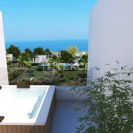 Appartementen met Zeezicht die Heldere en Ruime Leefruimtes Bieden in Esentepe, KyreniaEsentepe, gelegen aan de oostkust van Noord-Cyprus, is een van de meest geliefde woongebieden van het eiland dankzij de kustlijn, natuurlijke wandelroutes, schone lucht en rustige levensstijl. De regio strekt zich uit langs de kust ten oosten van Kyrenia en combineert indrukwekkende zee- en bergzichten met gemakkelijke toegang tot golfbanen, baaien en dagelijkse voorzieningen. Hierdoor is het zowel voor permanent wonen als voor vakanties een ideale locatie.De appartementen te koop in Noord-Cyprus Girne liggen op 300 m van de hoofdweg Girne-Esentepe, 650 m van de zee, 900 m van het dichtstbijzijnde strand, 9,5 km van de Korineum Golf Club, 12 km van Alagadi Turtle Beach, 19 km van Kyrenia, 26 km van het Dr. Suat Günsel Ziekenhuis en de Universiteit van Kyrenia, 28 km van de haven van Kyrenia, 41 km van de luchthaven van Ercan en 81 km van de luchthaven van Larnaca.Het project, ontwikkeld op een groot perceel, bestaat uit appartementen, lofts, woningen met groendaken en vrijstaande villa’s. De ruime gezamenlijke zwembadzone, aangelegde tuinen en recreatiegebieden creëren een leefomgeving die harmonieus samengaat met de serene sfeer van de Middellandse Zee. De buitenzwembaden, ontspanningsruimtes en zonneterrassen zorgen ervoor dat bewoners op elk moment van de dag kunnen genieten van een comfortabele leefomgeving. De royale groene zones, natuur-geïntegreerde architectuur, wandelpaden en uitzichten op de Middellandse Zee maken het project ideaal als zowel vakantiewoning als investering.De gelijkvloerse appartementen beschikken over privétuinen, terwijl de bovenverdiepingen ruime dakterrassen bieden. Loft-appartementen vallen op door hun dubbele plafondhoogte, grote ramen en open indeling. De interieurs benadrukken hoogwaardige afwerking. Dankzij de grote raampartijen wordt het interieur de hele dag door overspoeld met natuurlijk licht. De open keuken, geïntegreerd met de woonkamer, biedt een ideale ruimte voor zowel dagelijks gebruik als het ontvangen van gasten. De slaapkamers zijn uitgerust met functionele opbergruimtes. De appartementen beschikken over tal van comfortverhogende voorzieningen zoals centrale internetinfrastructuur, een intercomsysteem en een satellietinstallatie. ECN-00565