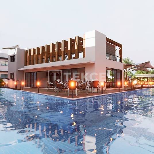 Appartementen die Sociaal Leven en Strandcomfort Bieden in Yeni BoğaziçiDe appartementen te koop in Gazimağusa, Noord-Cyprus, zijn gelegen in het Yeni Boğaziçi Salamis-gebied aan de oostkust. Dit is een van de meest gewilde regio’s van het eiland voor zowel wonen als investeren, dankzij de gouden zandstranden, brede wandelpaden, rustige sfeer en zich ontwikkelende infrastructuur. Het ononderbroken uitzicht op zee, de nabijheid van de historische Salamis-ruïnes en de levendige hotel-toerisme-activiteit van het gebied maken het een ideale omgeving voor zowel korte vakanties als langdurig wonen.Deze unieke nederzetting is gepland in een compacte complexstructuur bestaande uit 48 woningen, met als doel de bewoners een resort-achtige levensstijl te bieden. Tot de uitstekende kenmerken van het complex behoren een strandshuttleservice op gezette tijden, een café & à la carte restaurant, een kinderspeeltuin, een aquapark, een sauna, een massageruimte, een fitnessruimte, barbecueplekken en een groot Olympisch zwembad. Het complexbeheer biedt ook diensten voor huur- en huurdersbeheer, wat een aanzienlijk voordeel is voor investeerders.Het complex beschikt over open parkeerplaatsen, en de aangelegde tuinen, ondersteund door wandelpaden, bieden een esthetisch aangename en functionele omgeving. De appartementen zijn verkrijgbaar in verschillende indelingen, elk ontworpen met een open keuken, ruime woonruimtes en een comfortabele woonervaring. Grote ramen maximaliseren natuurlijk licht, en sommige appartementen kijken uit op het zwembad van het complex, terwijl andere uitzicht bieden op het omringende open landschap. ECN-00578