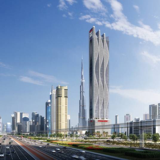 102 verdiepingen met een panoramisch uitzicht op de Burj Khalifa en Downtown Dubai.