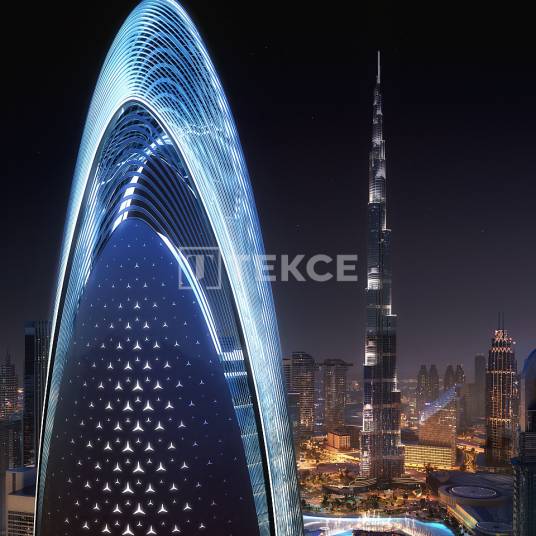 Op Mercedes-Benz Geïnspireerde Luxe Appartementen in Downtown Dubai VAEDowntown Dubai is een wereldwijd bekend, iconisch stadscentrum, waar moderne architectonische wonderen, luxe winkelcentra en levendige nachtelijke uitzichten samenkomen. Het hoogste gebouw ter wereld, de Burj Khalifa, ligt in dit gebied. Bovendien vind je hier een van de grootste winkel- en entertainmentcomplexen ter wereld, zoals The Dubai Mall. Downtown Dubai biedt een eigentijdse en luxueuze stadservaring met chique hotels, uitstekende restaurants en uitgestrekte groene ruimten.De hypertower is geïnspireerd op het merk Mercedes-Benz en ligt in het hart van Dubai. Dit project biedt luxe wonen op het belangrijkste punt van de stad, met directe toegang tot de hoofdwegen van Dubai en op loopafstand van de belangrijkste toeristische attracties van de stad. De appartementen te koop in Dubai VAE liggen op 14 minuten lopen van het Dubai Canal en op 16 minuten lopen van Dubai Mall. Bovendien liggen de appartementen op 4 minuten van het metrostation Business Bay, 28 minuten van Palm Jumeirah en 21 minuten van internationale luchthaven Dubai.De appartementen bevinden zich in het nieuwe iconische gebouw in Dubai, ’s werelds eerste en enige woontoren met het merk Mercedes-Benz. De toren is 341 meter hoog en heeft 65 verdiepingen met in totaal 150 appartementen. De appartementen zijn er in verschillende modellen, waaronder 2- en 3-slaapkamer suites en 4- en 5-slaapkamer penthouse. Een van de belangrijkste kenmerken van dit exclusieve project is dat elk appartement een plafondhoogte van 4,2 meter heeft, wat uitzicht biedt op zowel de Burj Khalifa als de prachtige skyline van Dubai.Het project omvat 4 verdiepingen die zijn gewijd aan sociale voorzieningen en entertainmentruimten. Slimme gebouw- en huissystemen, een spa en fitnesscentrum, een zwembad op het podiumniveau, een overloopzwembad op de hogere verdiepingen, housekeeping, valet services, speciale geluidsisolatie en zonnepanelensystemen zijn aanwezig. Bovendien ondersteunt het project duurzaam wonen en is het LEED-gecertificeerd.Elk appartement is voorzien van kledingkasten, plafondafwerking, keukenmeubilair en hoogwaardige keukenapparatuur (koelkast, vaatwasser, magnetron, oven en ijsmachine). Daarnaast beschikken de appartementen over privézwembaden, jacuzzi’s en badkuipen, terwijl de penthouses een eigen parkeerplaats binnen de eenheid hebben.Appartementtypes;2-slaapkamer Mercedes-Benz Pagoda Suite appartementen zijn tussen 169 m²-237 m² groot. Er zijn in totaal 80 eenheden in het project.3-slaapkamer Grand Mercedes-Benz Suite appartementen variëren in grootte tussen 254 m²-300 m². Er zijn in totaal 57 eenheden in het project.4-slaapkamer Mercedes-Benz One-Eleven Penthouse appartementen zijn 370 m² groot. Er zijn 8 eenheden in het project. 5-slaapkamer Mercedes-Benz Gullwing Penthouse appartementen zijn 650 m². Er zijn 3 appartementen in het project.Twee speciaal ontworpen penthouses van 1000 m² en 1400 m² bevinden zich aan de top van de toren en behoren tot de meest luxueuze appartementen ooit in Dubai.Neem voor het eerst ter wereld contact met ons op voor de lancering en vroegtijdige aankoopmogelijkheden van luxe Mercedes-Benz appartementen alleen in Downtown Dubai. DXB-00054