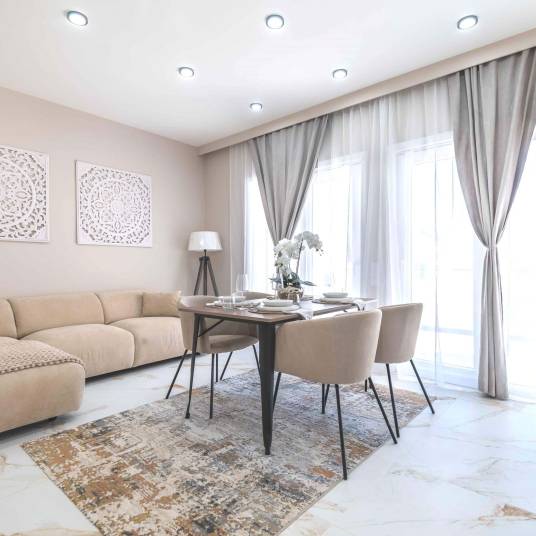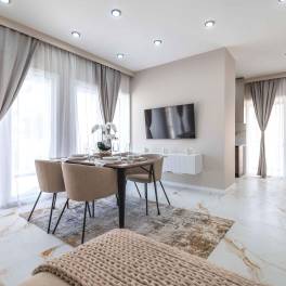 Om maximale energie-efficiëntie en comfort te waarborgen, zijn de appartementen voorzien van thermisch isolerende ramen, dubbele beglazing en airconditioning, waardoor het hele jaar door een aangename temperatuur wordt gegarandeerd. De keukens zijn volledig uitgerust met moderne Bosch-apparatuur, wat zorgt voor praktisch gebruiksgemak en efficiëntie. Elk appartement beschikt ook over een overdekte parkeerplaats voor extra veiligheid en gemak.