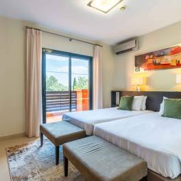 Het penthouse ligt op een van de meest gewilde locaties van het resort en profiteert van een verhoogde ligging met panoramisch uitzicht over de golfbaan en de sinaasappelboomgaarden. Het biedt gemakkelijke toegang tot een van de belangrijkste zwembaden en behoudt tegelijkertijd een hoog niveau van privacy.
