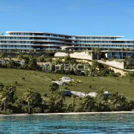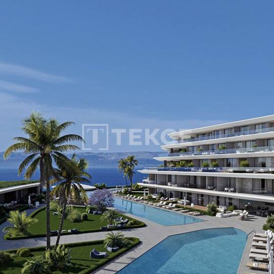Panoramisch Zeezicht Vastgoed in een Complex in ÇeşmeÇeşme, gelegen in het westen van İzmir, is een beroemde vakantiebestemming die bekend staat om zijn schone lucht en blauwe vlag-stranden. Met zijn natuurlijke schoonheid, beroemde restaurants, unieke keuken, jachthaven, architectuur en geschiedenis is het een van de meest gerenommeerde en luxueuze gebieden van Turkije.Dit unieke project is ontworpen om de mooiste momenten van het leven te combineren met het eindeloze blauw van de zee. Het biedt een gloednieuwe woonruimte waar u de schoonheid van Çeşme kunt omarmen. In dit bijzondere project kunt u op elk moment genieten van de rust van de zee, terwijl u het comfort van modern wonen en de charme van de natuur ervaart. Het project is niet alleen esthetisch, maar ook een perfect voorbeeld van functionaliteit en comfort. Het unieke ontwerp van de woningen zorgt voor een trapsgewijze structuur die aansluit bij de natuurlijke helling van het terrein. Deze indeling garandeert dat elke woning een ononderbroken uitzicht op zee heeft.Het zeezicht vastgoed te koop in İzmir bevindt zich op een strandlocatie, op slechts 3 km van de jachthaven, restaurants, markten en apotheken, 4 km van het ziekenhuis, 19 km van het Alaçatı Port Surf Center en 86 km van de luchthaven Adnan Menderes.Het complex is gebouwd op een terrein van 16.850 m² en omvat tuin-duplexen en woningen op de tussenverdieping. Het biedt faciliteiten zoals open en gesloten parkeerplaatsen, sport- en activiteitruimtes, gedeelde zwembaden, een Turks bad, een sauna, een café, een bar bij het zwembad, een lobby en ontvangstgebieden. Extra voorzieningen zijn onder andere een generator, een watertank, 24/7 beveiliging en beveiligingscamera’s.De appartementen bestaan uit een woonkamer, een open keuken, slaapkamers, een en-suite badkamer, een balkon, een terras en een tuinterras. Interieurkenmerken zijn onder andere een stalen deur, aluminium kozijnen, warmte-isolerend glas, keramische en laminaatvloeren, gelakte keukenkasten en deuren, een slim huisbeheersysteem, elektronische rolluiken en airconditioning voor verwarming en koeling. ADB-00107