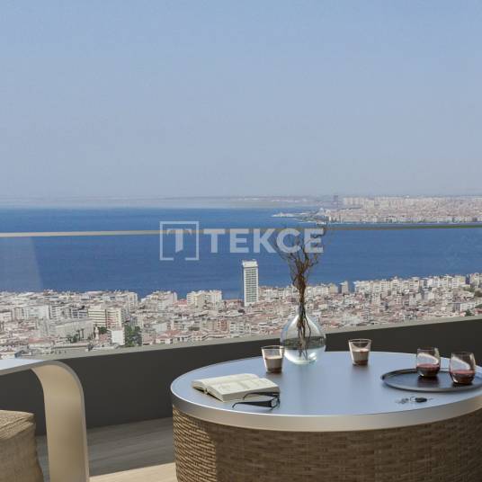 Appartementen met uitzicht op de Golf van İzmir in een complex in Konak op steenworp afstand van dagelijkse voorzieningenDe ontworpen appartementen zijn gelegen in het Konak district van İzmir Turkije. Konak is het centrum van cultuur, beeldende kunst, handel, toerisme en vervoer in İzmir. Samen met meerdere internationale onderwijsinstellingen, is Knak een zeer sociale leefruimte.De appartementen te koop in İzmir Konak liggen op 50 m van de bushalte. De appartementen liggen op 1 km van het stadion, de haven van İzmir, het metrostation, het ziekenhuis en het İzmir Kültürpark. De appartementen liggen ook op 1,4 km van internationale scholen, 2 km van de veerboothaven en İzmir Kordon, 22 km van de luchthaven Adnan Menderes, 52 km van de stranden van Seferihisar, 60 km van het strand van Gülüdür, 82 km van het strand van Alaçatı en 90 km van Çeşme.Het wooncomplex ligt op 86.000 m² grond. Het complex biedt 24/7 beveiliging, beveiligingscamera’s, binnen- en buitenparkeerplaatsen, een fitnessruimte, SPA, sauna, Turks bad, bioscoop, wandelpaden, speeltuin en speelterreinen, binnen- en buitenzwembaden, conciërgedienst, café, restaurant, markt en commerciële ruimtes.Het project biedt verschillende kamertypes. De flats zijn verdeeld in woonkamers, en suite badkamers, douchecabines, balkons en gesloten of open keukens. De flats zijn uitgerust met inbouwsets, centrale satellietsystemen en verwarmings- en koelsystemen. ADB-00003