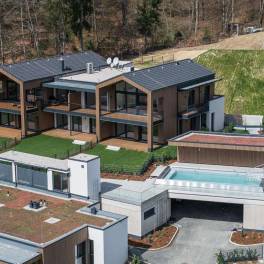 Eisende architectuur in een aantrekkelijke omgeving – de idyllische helling en de eisen voor hoge woonkwaliteit gaven de doorslag voor het ontwerp van de 6 bouwlichamen met in totaal 35 woningen, met woonoppervlakken tussen 46 m² en 257 m². De woonoppervlakken van de 2- tot 5-kamerappartementen kunnen flexibel als geheel worden gebruikt of aan de situatie worden aangepast door verschillende ruimtes te creëren.
