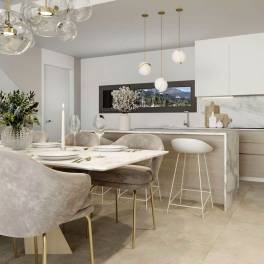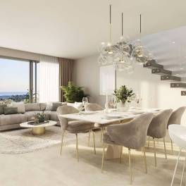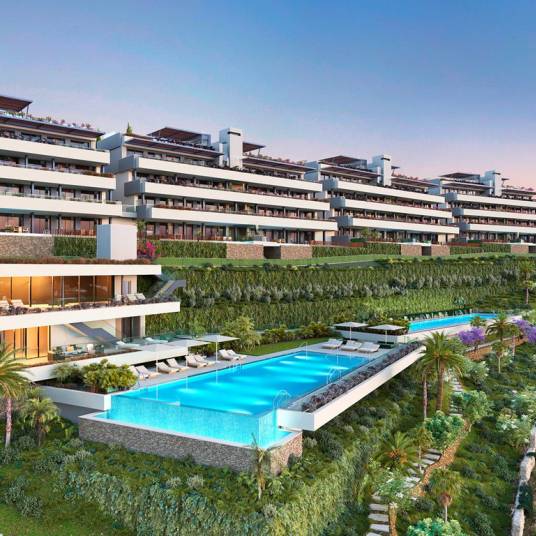 This new residential complex nestled in the hills close to Benahavis. There are a total of 56 homes for sale, all with panoramic sea views, distributed over 7 blocks with only two properties on each floor. The properties available for sale have either three or four bedrooms and feature fully fitted kitchens, underfloor heating, hot and cold air-conditioning and ample terraces, which can be accessed from the living areas and all bedrooms. The main bedrooms have their own, private dressing room. The penthouse apartments have a rooftop terrace and some apartments are sold with a private pool. Communal areas with landscaped gardens, three swimming pools, including an indoor pool, a fully equipped gym and a spa. The complex is located close to all amenities and just a 10-minute drive from Marbella and Puerto Banus. The properties are sold with underground parking and a storage room.Completion date May 2026Prices from € 1,420,000 – € 2,300,000Prices for apartments with three bedrooms from € 1,430,000- € 1,550,000Prices for penthouse apartments with three bedrooms from € 2,000,000Photos, views and layout may vary and are for illustrative purposes only